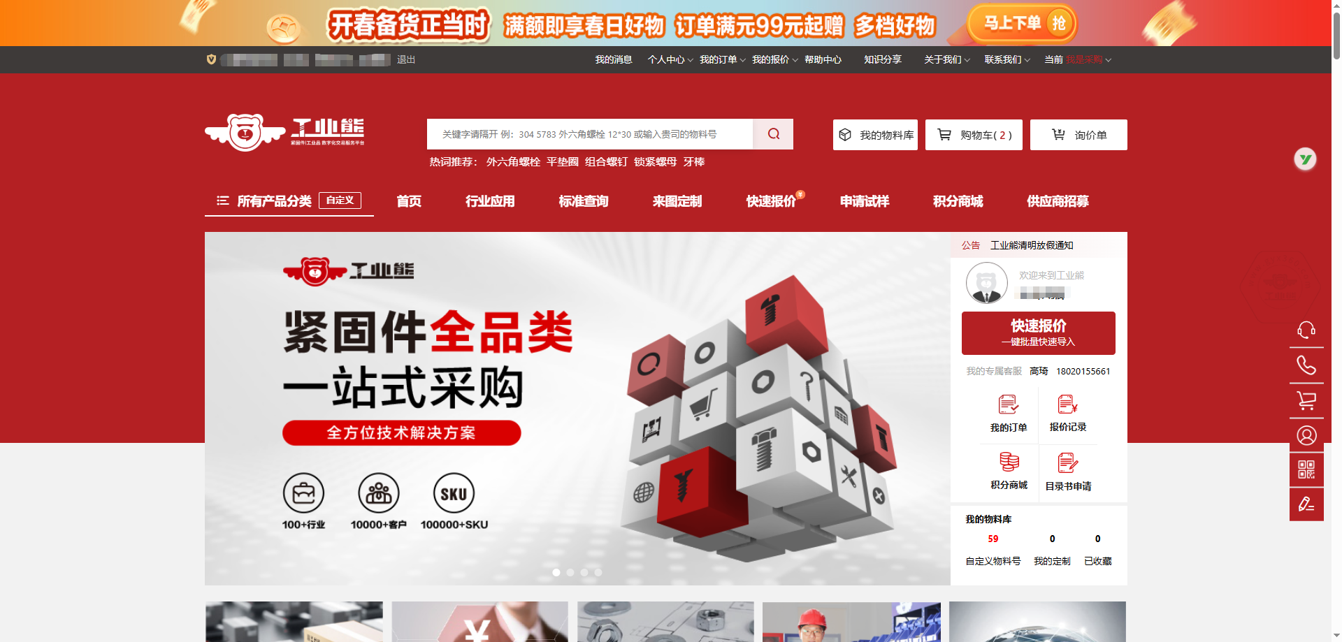 工业熊长期深耕紧固件垂直领域,围绕产品供应、技术支持、行业应用、数字化采购与供应链协同,不断提升平台综合服务能力。通过整合标准件、非标件、进口品牌及行业配套资源,工业熊持续为客户提供更高效、更专业、更稳定的一站式紧固件解决方案。